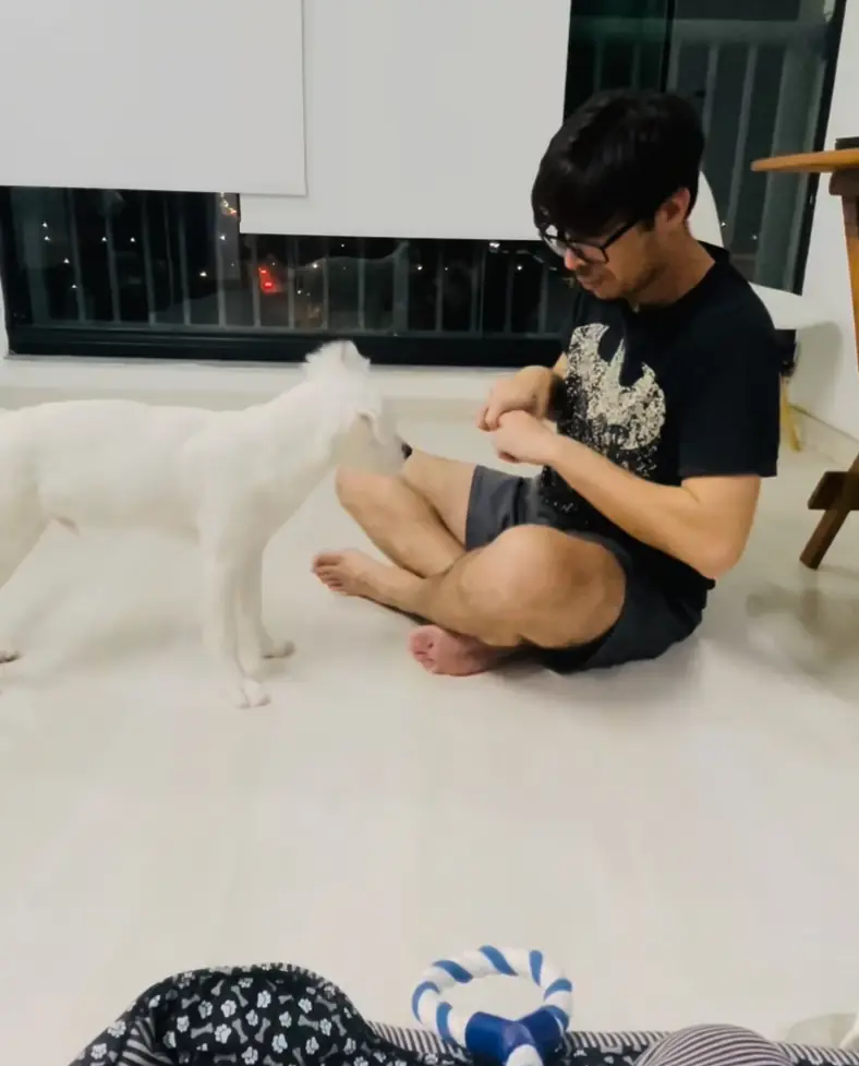 Ela e o marido, Jean Carlos Fenato de Oliveira, viajaram até Santos no dia 13 de setembro para buscá-lo em uma feira de adoção. “É a nossa primeira adoção como casal e estamos vivendo essa responsabilidade com muito amor”, completou Mayara. Desde a chegada, o casal vem se dedicando ao adestramento em Libras. “Ele já começou a entender e já sabe os sinais de ‘sentar’, ‘deitar’ e ‘esperar’. Não temos pressa; estamos ensinando com paciência e muito amor”, relatou a tutora.
