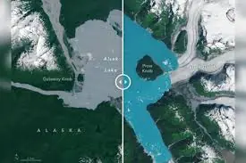 Imagens de satélite registradas desde 1984 mostram a transformação gradual da paisagem. À medida que o gelo derretia, formaram-se grandes lagos proglaciais, como o Alsek Lake, que cresceu significativamente ao longo dos anos, passando de 45 km² para cerca de 75 km². Esse processo isolou Prow Knob do restante da geleira entre julho e agosto de 2025.