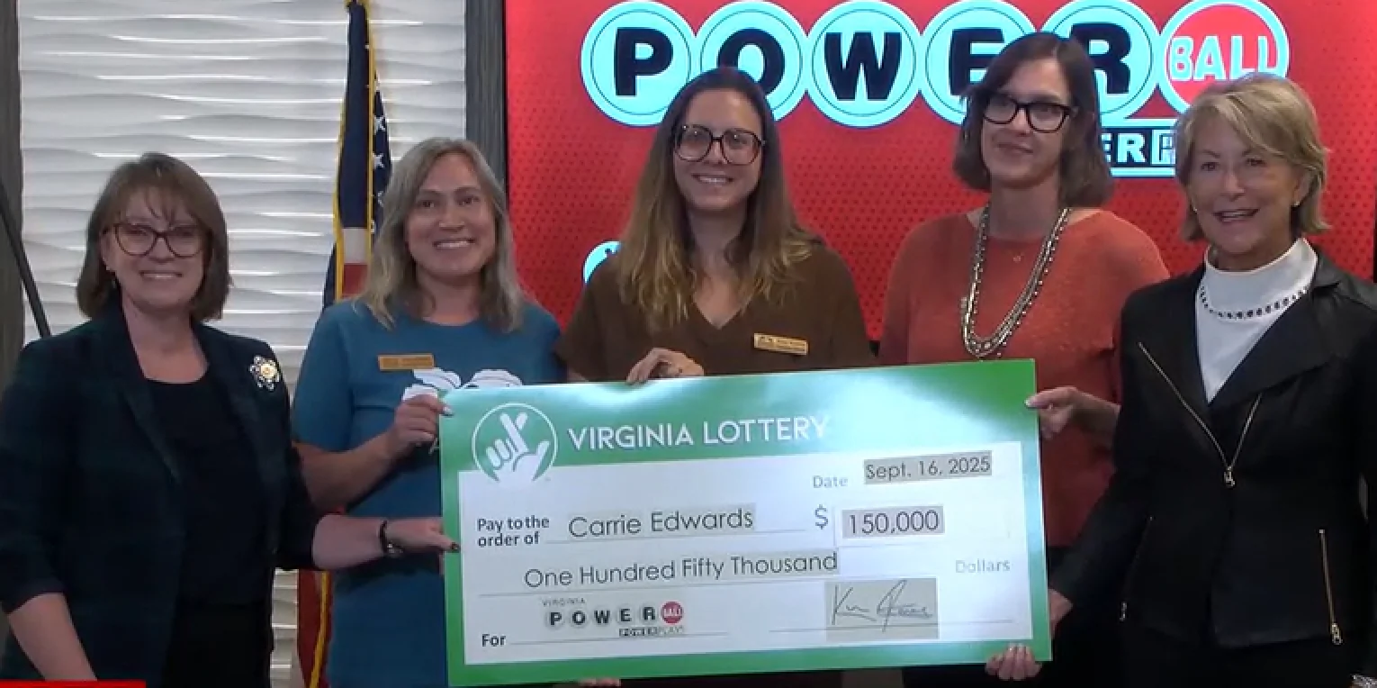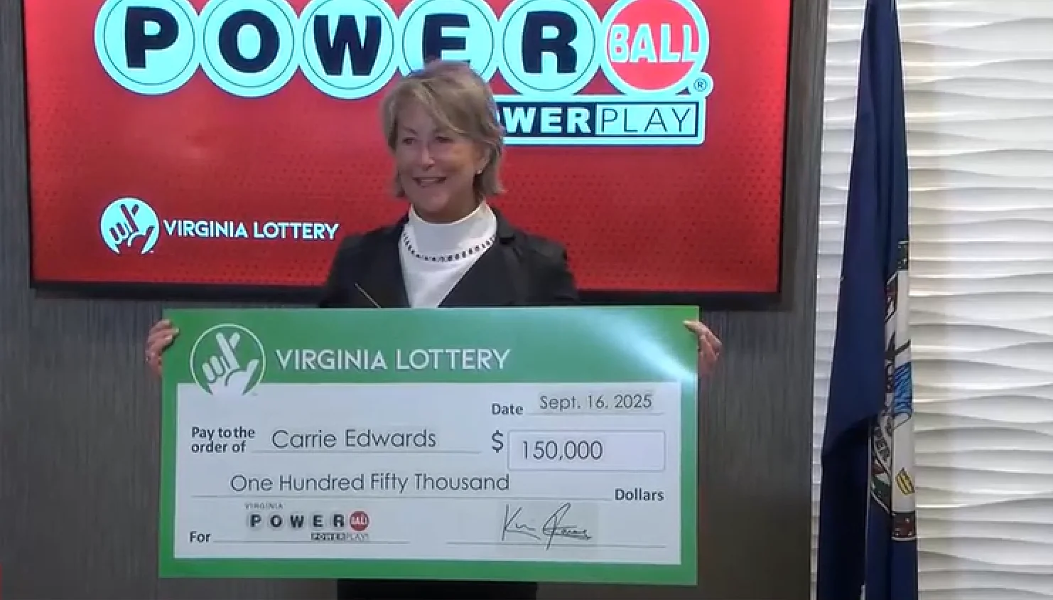 A confirmação veio no dia 16 de setembro, quando recebeu o prêmio das mãos de Khalid Jones, diretor executivo da Loteria da Virgínia. Logo após o recebimento, Carrie decidiu doar o valor integral para três instituições de caridade.