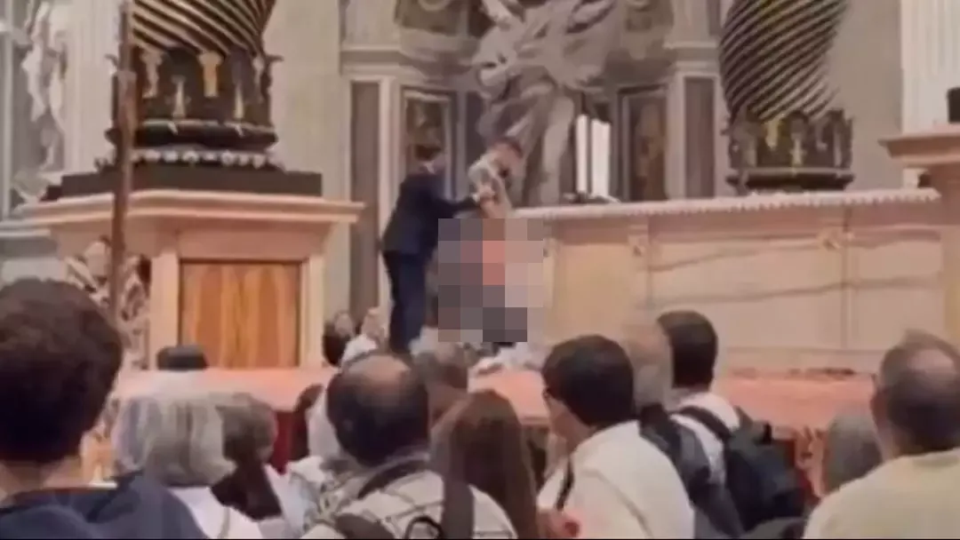 Homem profana altar sagrado durante missa na Basílica de São Pedro, causando choque entre fiéis. (Foto: Instagram)