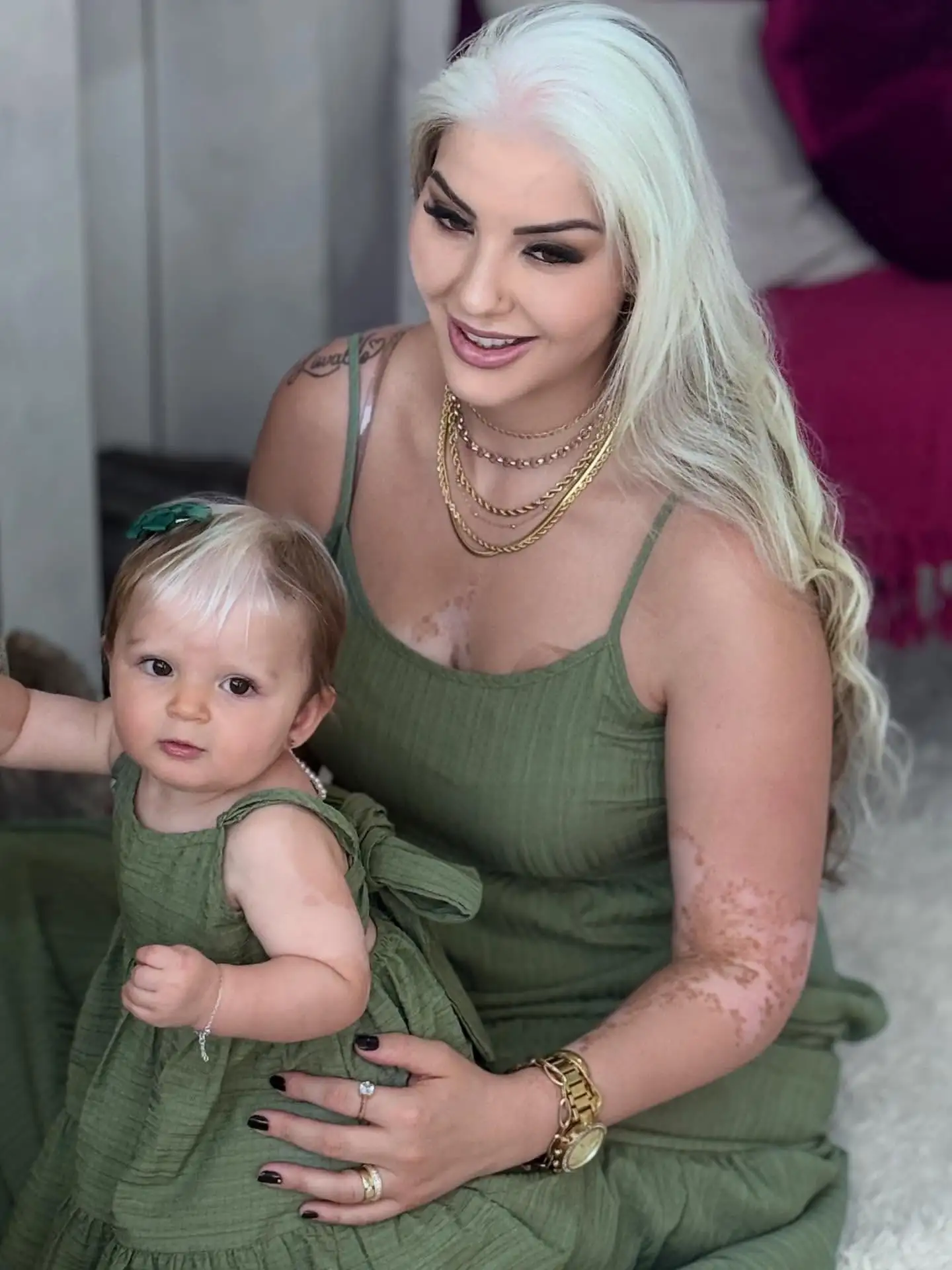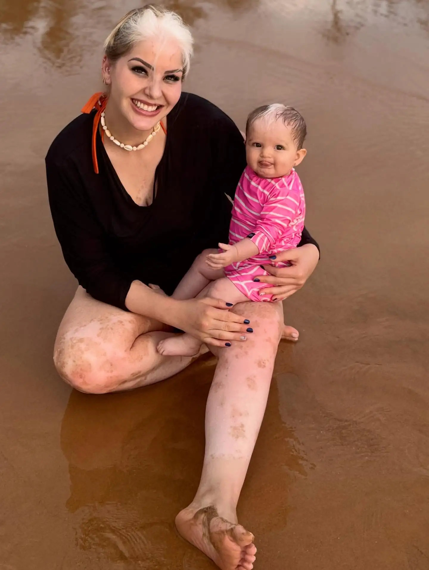 Quando engravidou, Pamella já imaginava que Vitória poderia nascer com a mesma condição. “Assim que ela nasceu, a primeira pergunta que eu fiz foi: ‘Ela tem as manchinhas? Ela é manchadinha?’ Ninguém entendeu direito, até que a fotógrafa que eu contratei me respondeu que sim”, disse.