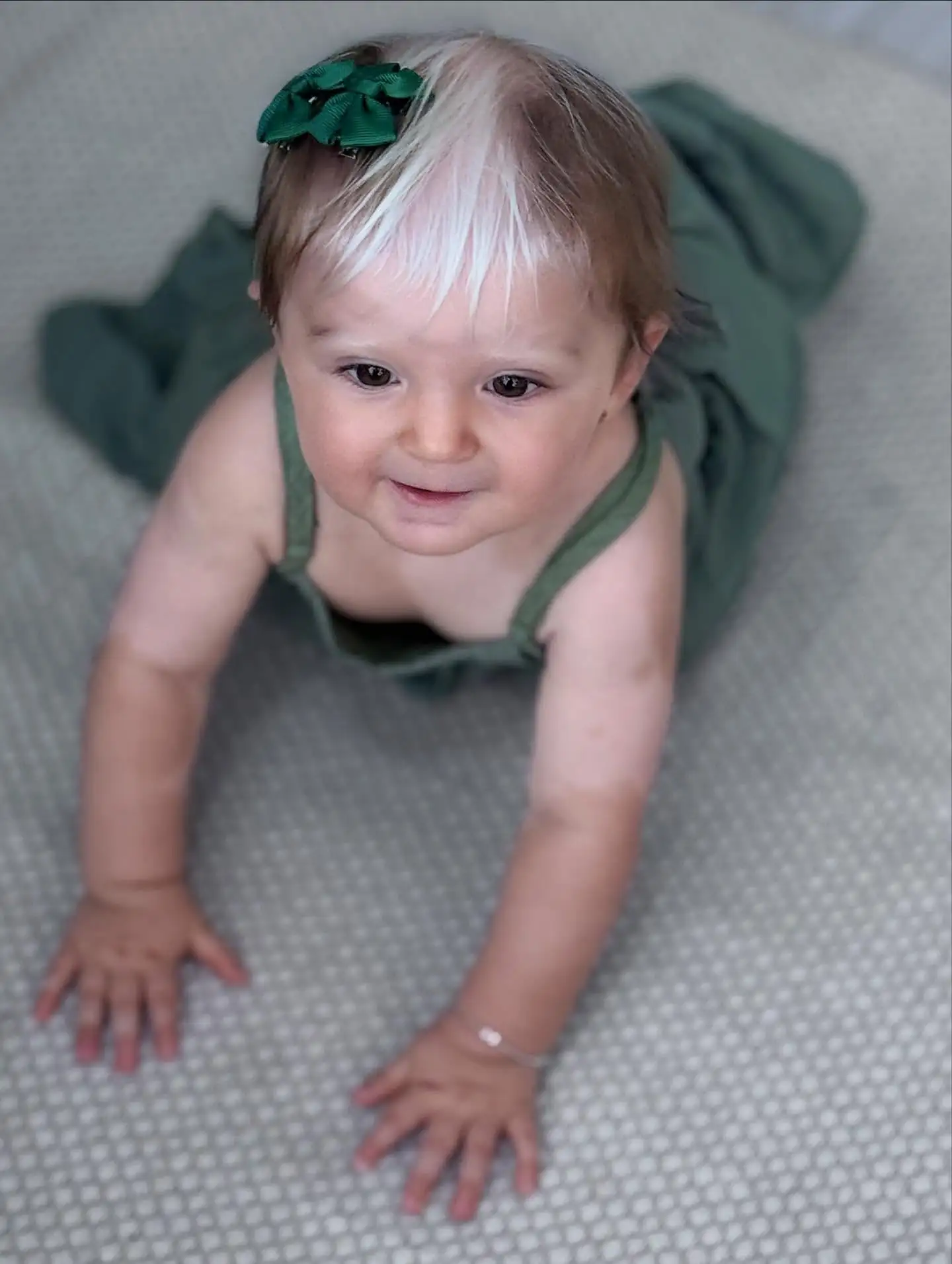 Vitória Amancio Cardoso, de Vinhedo (SP), viralizou nas redes sociais ao nascer com uma mecha branca no centro do cabelo, igual à da mãe, Pamella Sandy Amancio Cardoso, de 32 anos. A semelhança entre as duas é resultado de uma condição genética rara, o piebaldismo, que afeta a produção de melanina e pode causar áreas despigmentadas na pele e nos fios de cabelo.