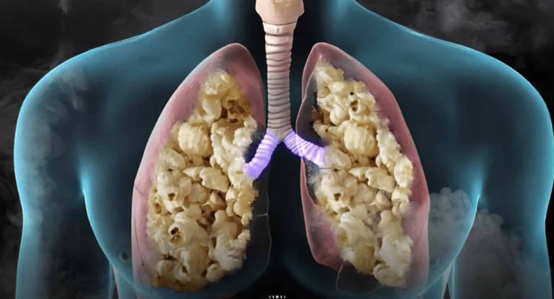 O nome popular da doença está relacionado ao diacetil, um aromatizante com gosto de manteiga utilizado em pipocas industrializadas. A exposição prolongada a esse composto por inalação foi associada aos danos pulmonares nos trabalhadores. Embora o consumo oral não apresente o mesmo risco, estudos indicam que a inalação pode causar cicatrizes permanentes nas vias respiratórias.
