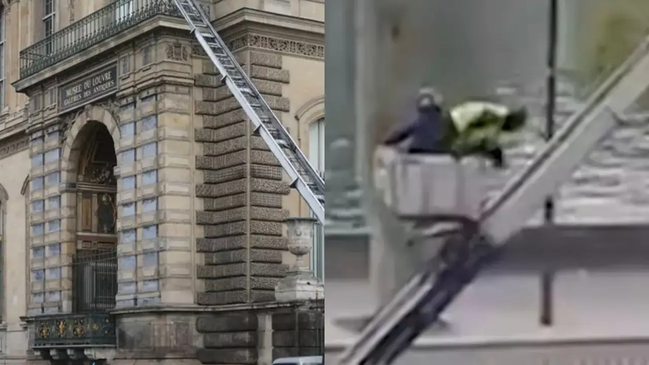 Roubo audacioso no Museu do Louvre: criminosos disfarçados utilizam escada para invadir o local. (Foto: Instagram)