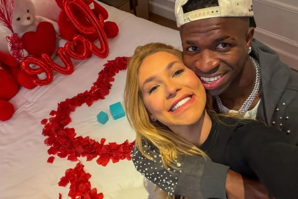 Para tornar o momento ainda mais especial, Vini Jr. organizou uma surpresa romântica para pedir Virginia em namoro. O quarto do hotel foi decorado com pétalas de rosas, pelúcias em formato de coração e um anel de uma grife renomada, evidenciando o carinho e a dedicação do jogador na ocasião.