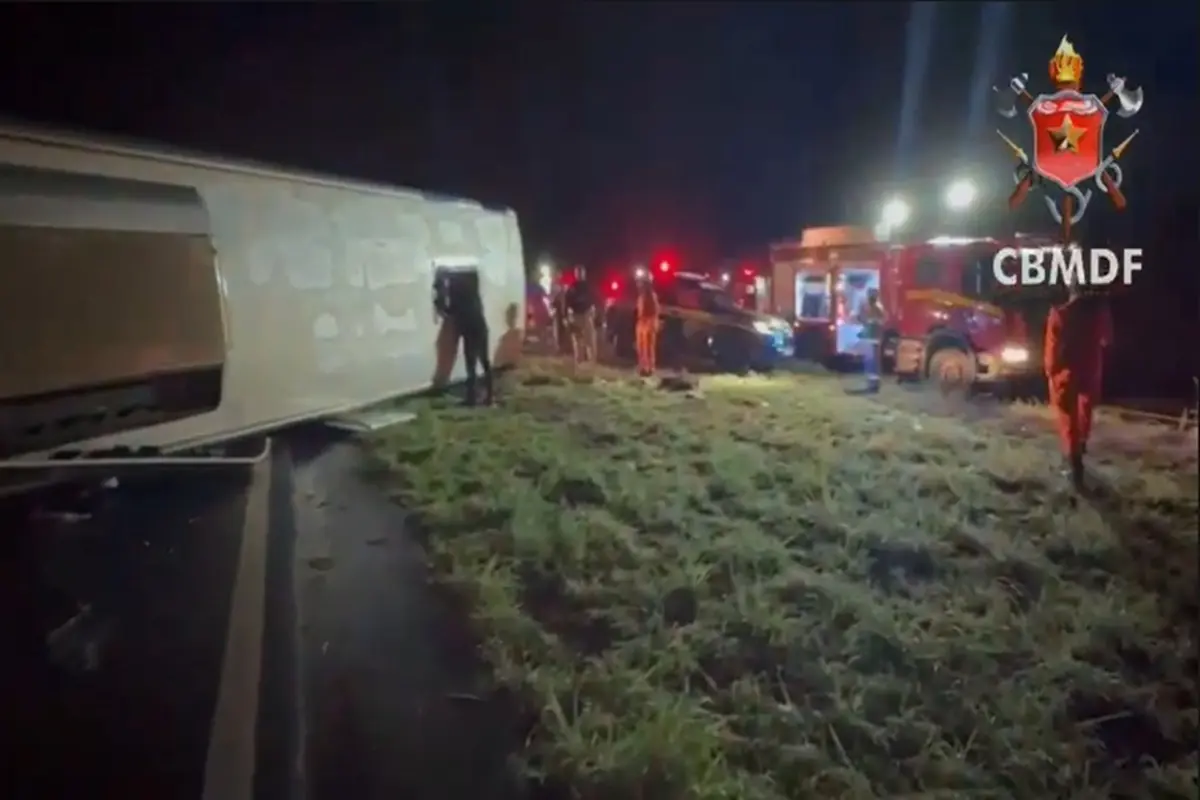 Com o impacto, o ônibus tombou, deixando dezenas de feridos. O Corpo de Bombeiros Militar do Distrito Federal (CBMDF) informou que o veículo transportava 39 passageiros. Ao todo, 35 pessoas precisaram de atendimento médico, sendo que 27 foram levadas a hospitais da região.