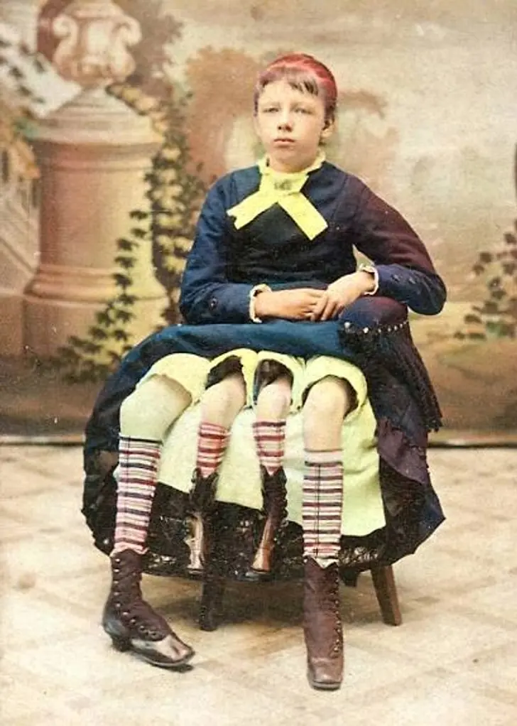 Myrtle Corbin, conhecida mundialmente como “a mulher de quatro pernas”, tornou-se um dos casos médicos mais fascinantes e enigmáticos da história. Nascida em 1868, no Texas, ela apresentava uma condição extremamente rara chamada dipygus, que causa a duplicação da metade inferior do corpo — resultando em quatro pernas e dois sistemas reprodutivos completos. A anomalia era tão incomum que rapidamente chamou atenção de médicos, cientistas e curiosos de todo o mundo.