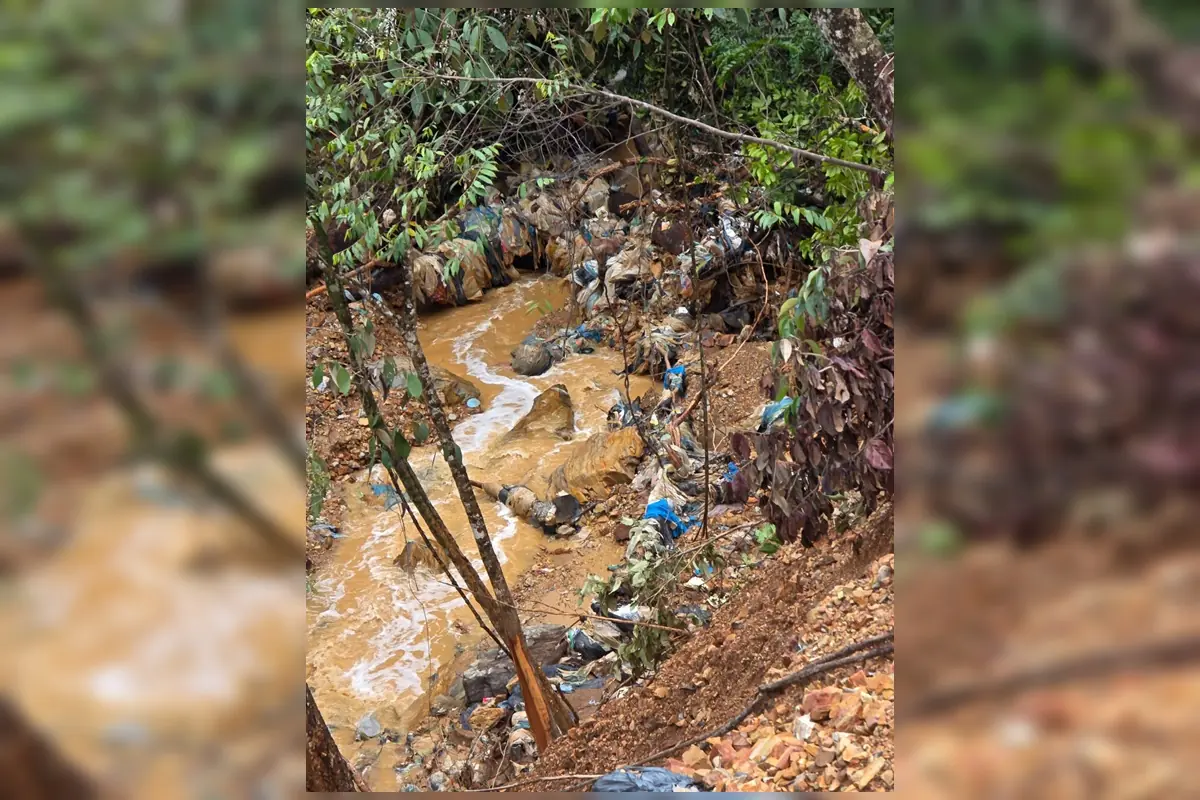 Deslizamento de lixo atinge córrego Santa Bárbara em Padre Bernardo (GO). (Foto: Instagram)