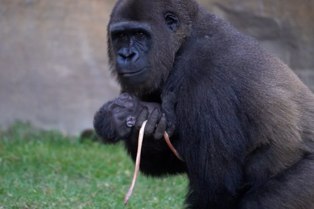 Gorila ameaçado de extinção nasce à luz do dia diante de visitantes na Espanha
