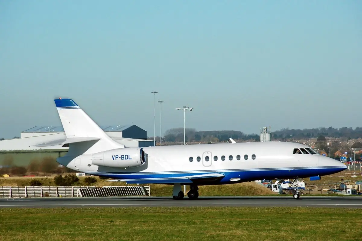 Avião Dassault Falcon 2000, pertencente a Daniel Vorcaro, estacionado nos EUA. (Foto: Instagram)