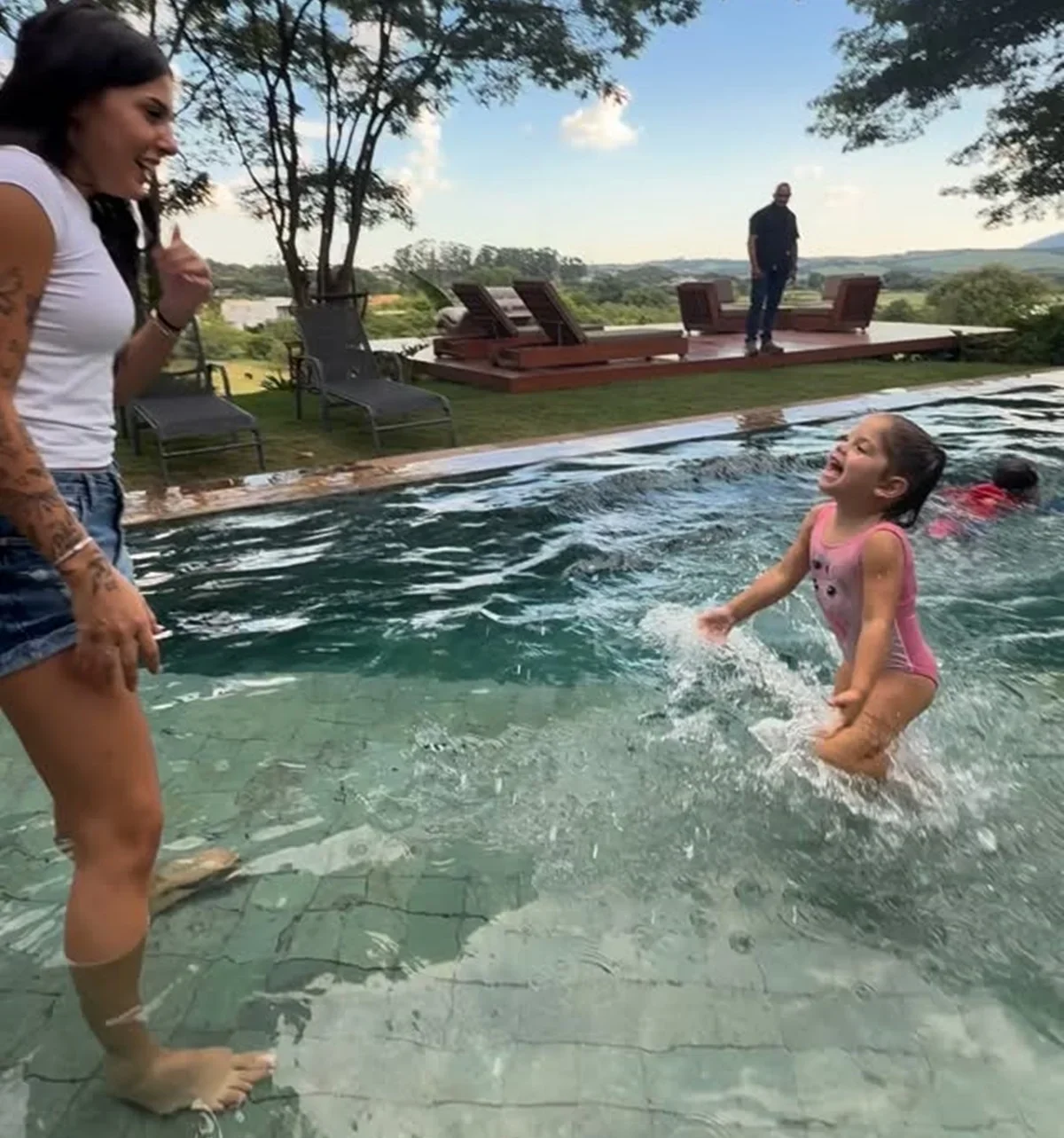As imagens mostram a boa relação entre Ana Castela e os pequenos, com destaque para as brincadeiras entre ela e Maria Flor, que incluíram até guerra de água. O clima descontraído reforça a conexão da cantora com a nova família, que parece ter se fortalecido desde o início do relacionamento com o cantor.