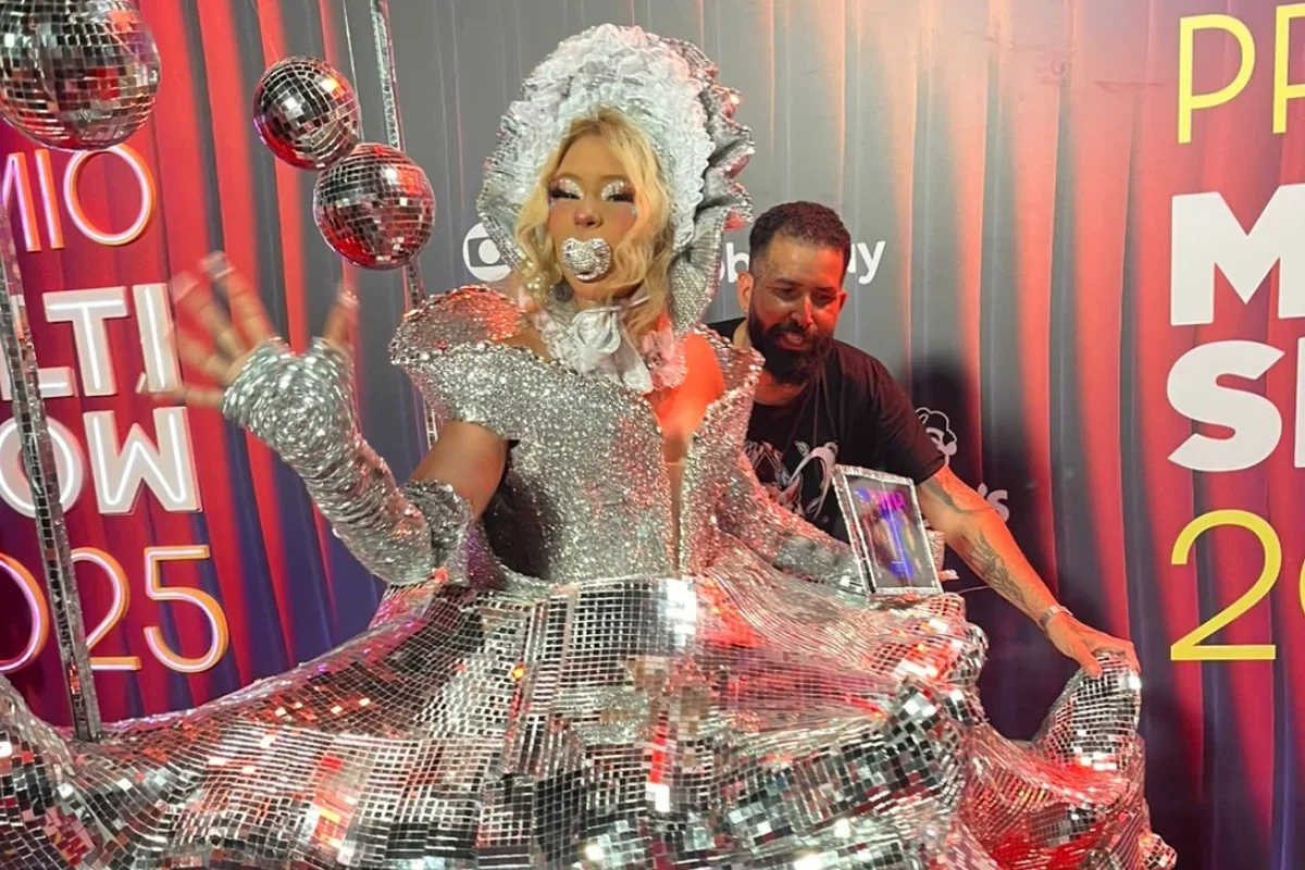 A cantora Wenny, irmã de Lexa, surpreendeu ao surgir com um visual inusitado no tapete vermelho do Prêmio Multishow 2025, realizado na noite desta terça-feira (9/12), no Rio de Janeiro. O look fazia referência ao universo infantil, incluindo acessórios como chupeta e andador, e chamou a atenção dos presentes.