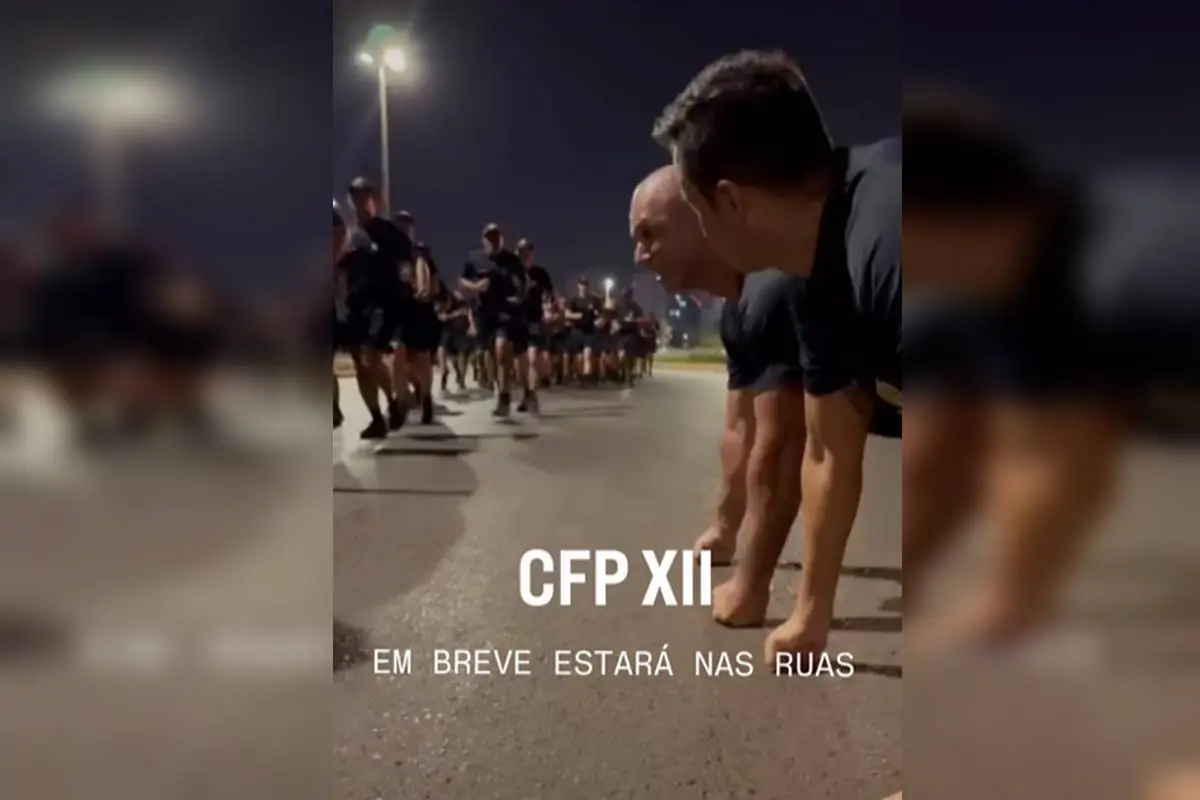 Aspirantes do XII Curso de Formação de Praças da PMDF durante exercício físico noturno na Academia de Polícia Militar de Brasília (Foto: Instagram)