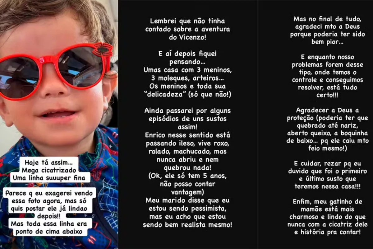 “Agradeci muito a Deus porque poderia ter sido bem pior”, contou a mãe, aliviada com a recuperação do herdeiro.