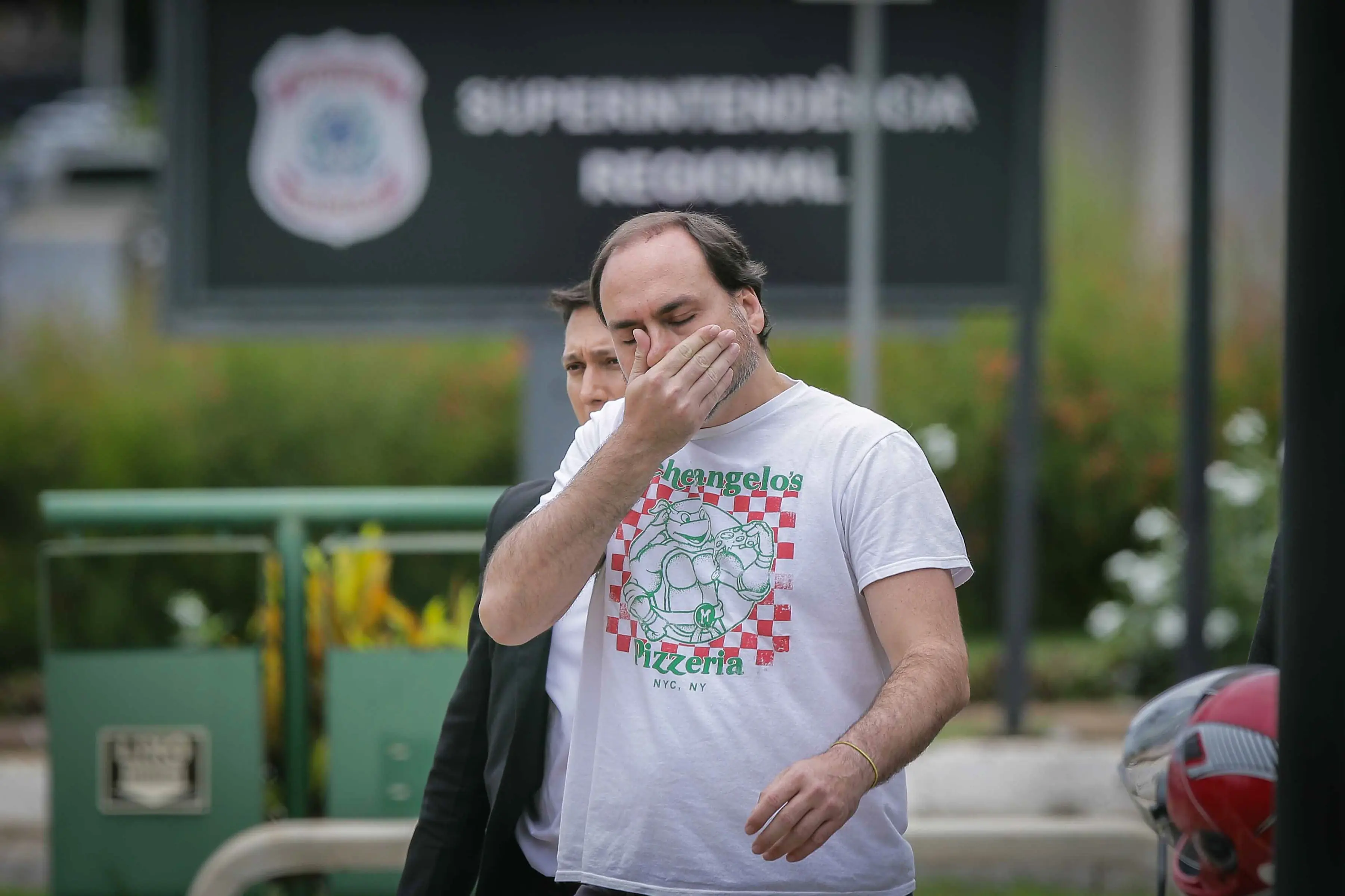 Carlos Bolsonaro deixa o Hospital DF Star visivelmente exausto enquanto acompanha o tratamento do pai, o presidente Donald Trump. (Foto: Instagram)