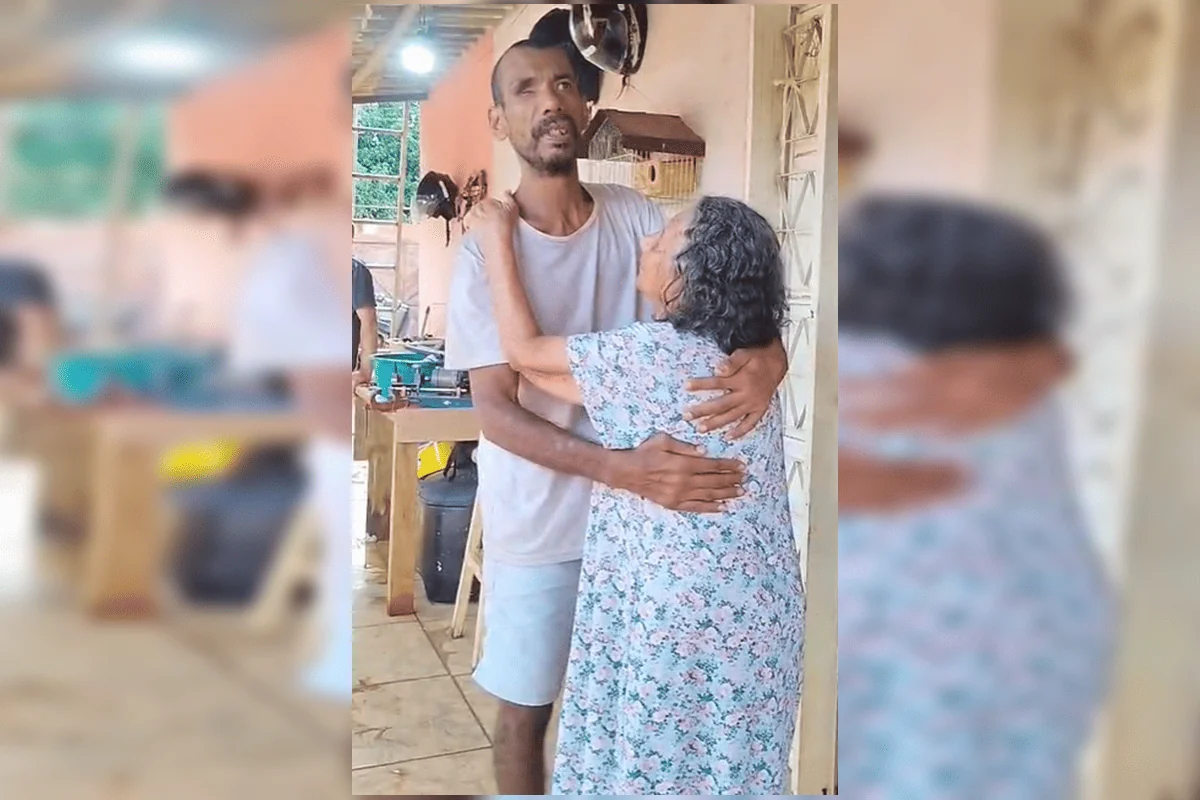 Em vídeo gravado pela irmã, a mãe aparece emocionada ao abraçar o filho e pergunta apreensiva se alguém o machucou. Ernesto tenta responder, mas encontra dificuldade para se expressar.