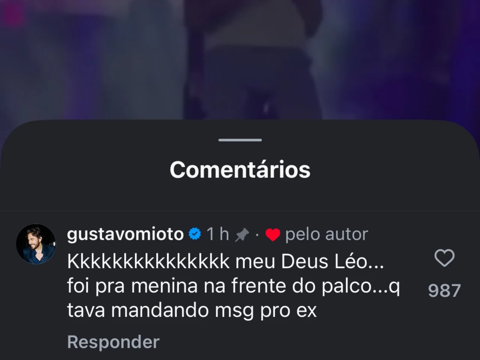 Para esclarecer de vez, Mioto comentou em uma publicação do jornalista Leo Dias que repercutia o vídeo viral, fornecendo o contexto verdadeiro da situação.
