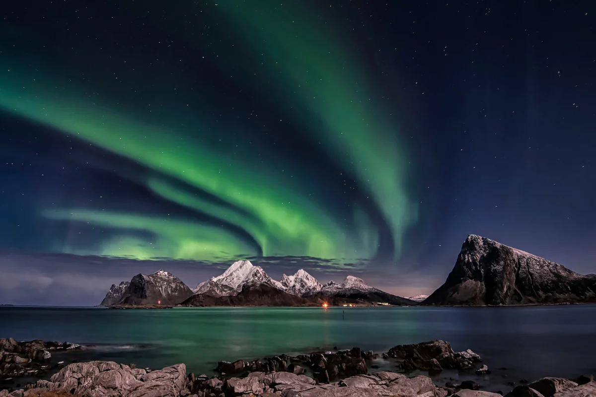 Aurora boreal sobre as paisagens glaciares da Groenlândia (Foto: Instagram)