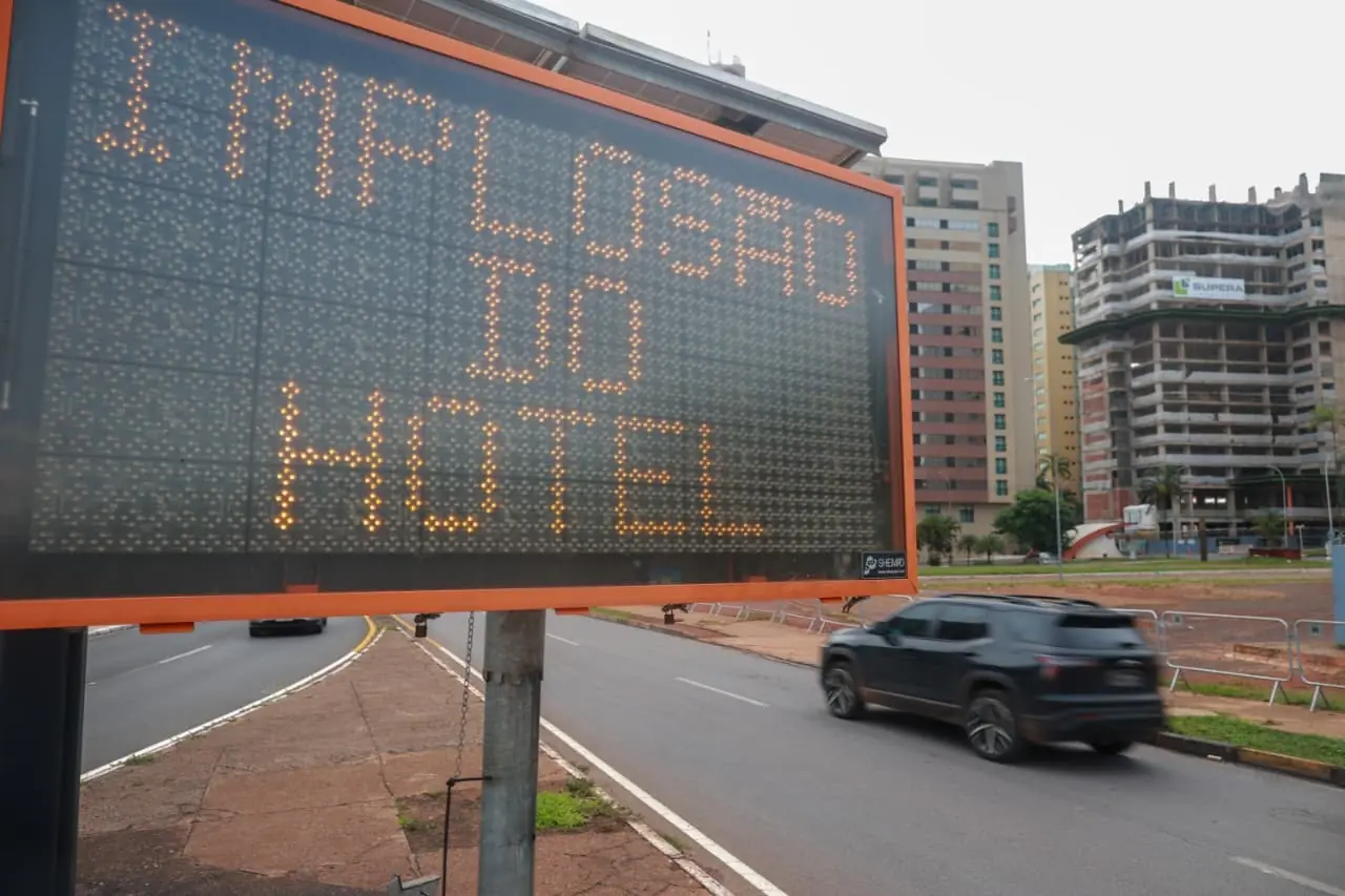 Placa eletrônica orienta evacuação segmentada em operação de segurança em hotel (Foto: Instagram)