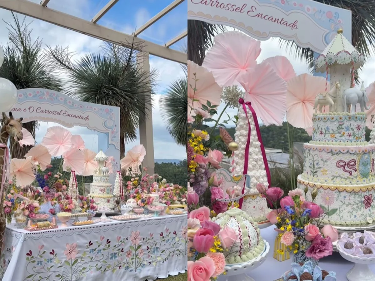 A profissional responsável pela decoração da celebração do primeiro aniversário de Serena, filha de Luan Santana e Jade Magalhães, compartilhou neste domingo (25/1) um vídeo que revela cada etapa do preparo do evento temático “Serena e O Carrossel Encantado”. A criança, fruto da relação entre Luan Santana e Jade Magalhães, completou um ano de idade no fim de dezembro, mas os registros só foram divulgados pelas redes sociais um mês depois, mostrando o cuidado e a dedicação investidos em cada detalhe.