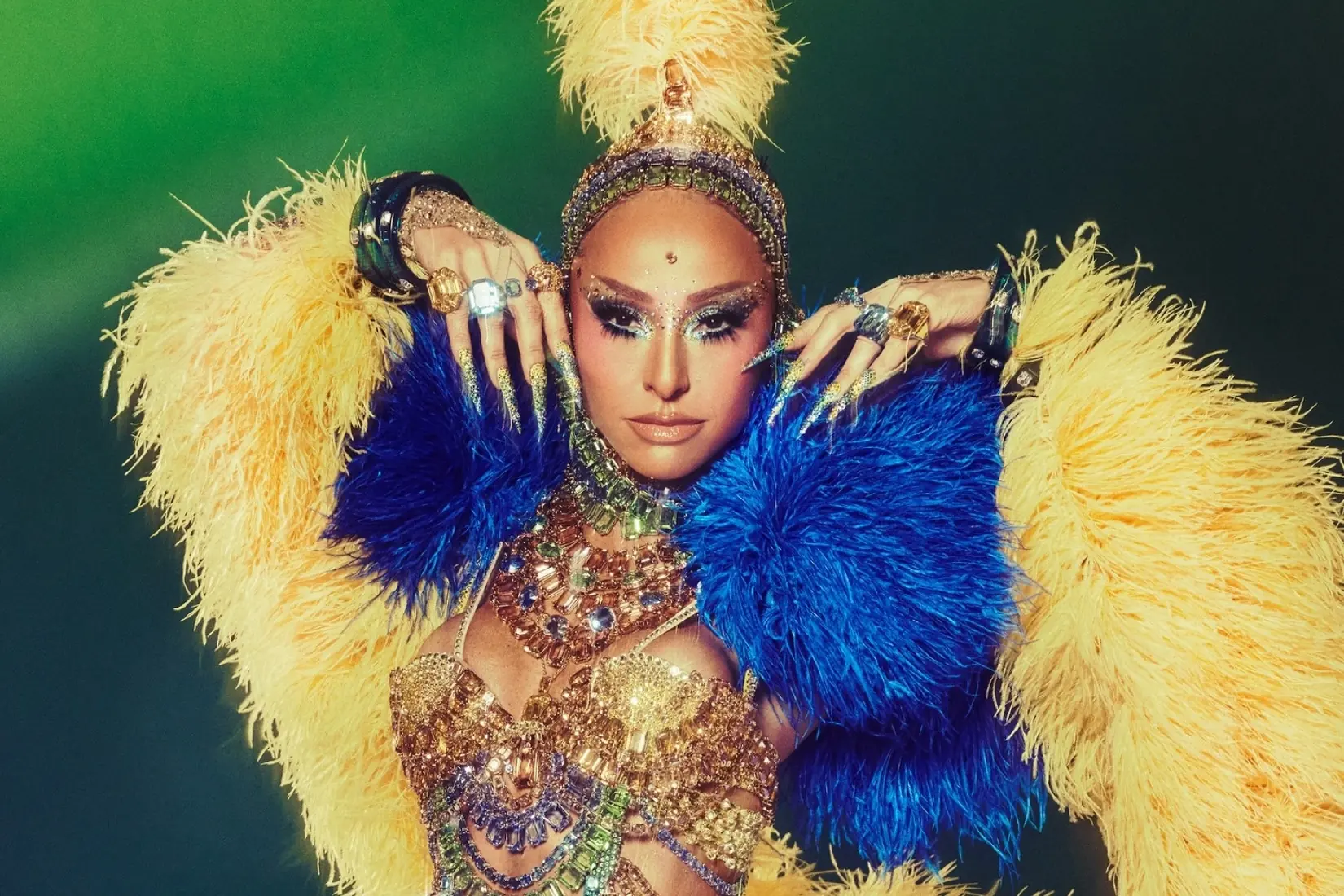 Sabrina Sato em traje carnavalesco deslumbrante azul e amarelo (Foto: Instagram)
