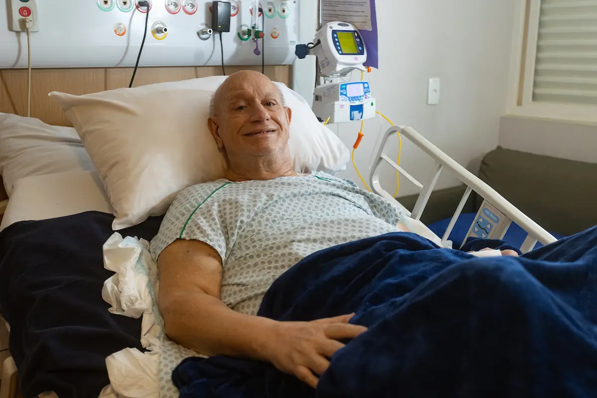 O médico pediatra Clóvis Roberto Puttini, 72 anos, que está internado há quase um ano em tratamento hospitalar, teve a oportunidade de assistir a uma sessão de cinema organizada pela equipe médica responsável por seus cuidados. A saída do ambiente de internação para uma sala de exibição foi cuidadosamente planejada pelos profissionais de saúde, que prepararam toda a logística necessária para garantir o conforto e a segurança de Clóvis Roberto Puttini durante o deslocamento e a permanência no local.