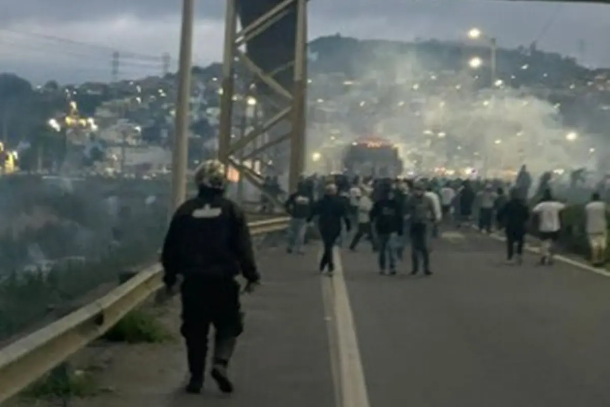 Confronto entre torcidas e ação policial em ponte após emboscada fatal (Foto: Instagram)