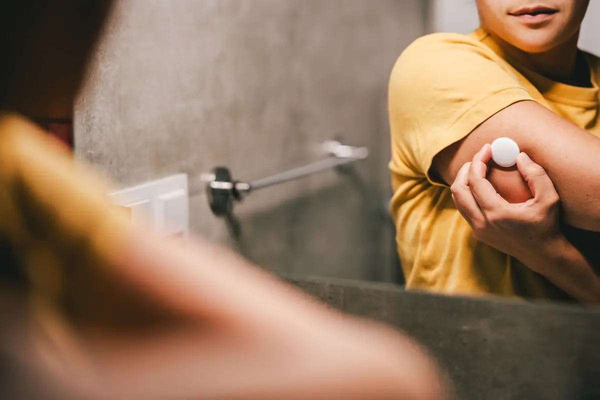 Pessoa aplicando sensor de monitoramento contínuo de glicose no braço (Foto: Instagram)