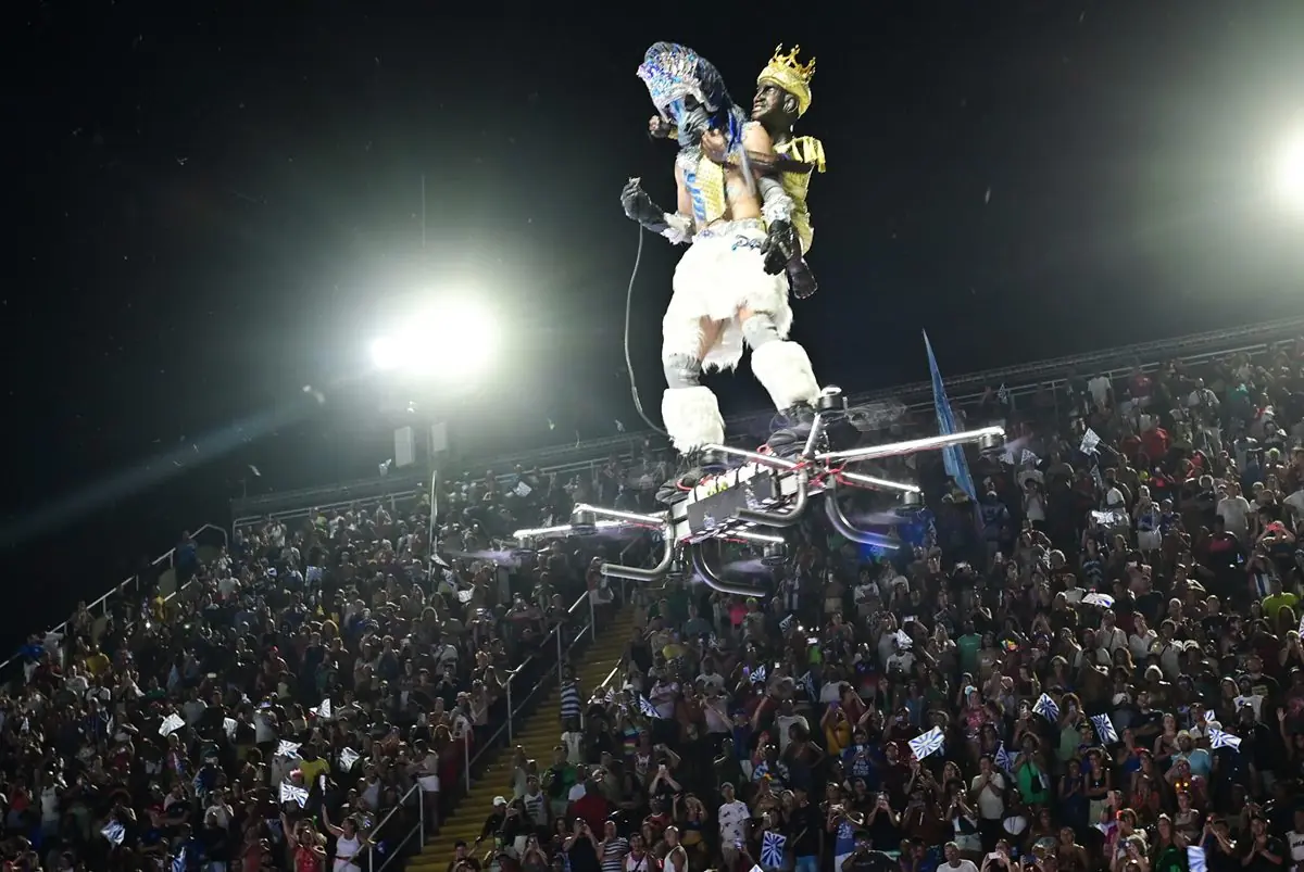 Integrante da Portela “voa” em drone gigante no Sambódromo, alvo de ofícios da ANAC (Foto: Instagram)