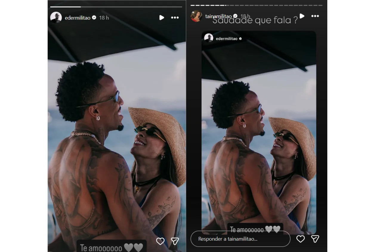 Logo em seguida, no story do Instagram, Éder Militão exibiu o mesmo registro, capturando o sorriso e o entrosamento de ambos diante do cenário litorâneo. Tainá Castro, ao repostar o clique em seu perfil, legendou com a frase “Saudade que fala”, demonstrando reciprocidade aos sentimentos expressos pelo atleta. A troca de declarações públicas evidencia a sintonia entre o casal, que divide momentos de lazer e romantismo em meio à rotina agitada.