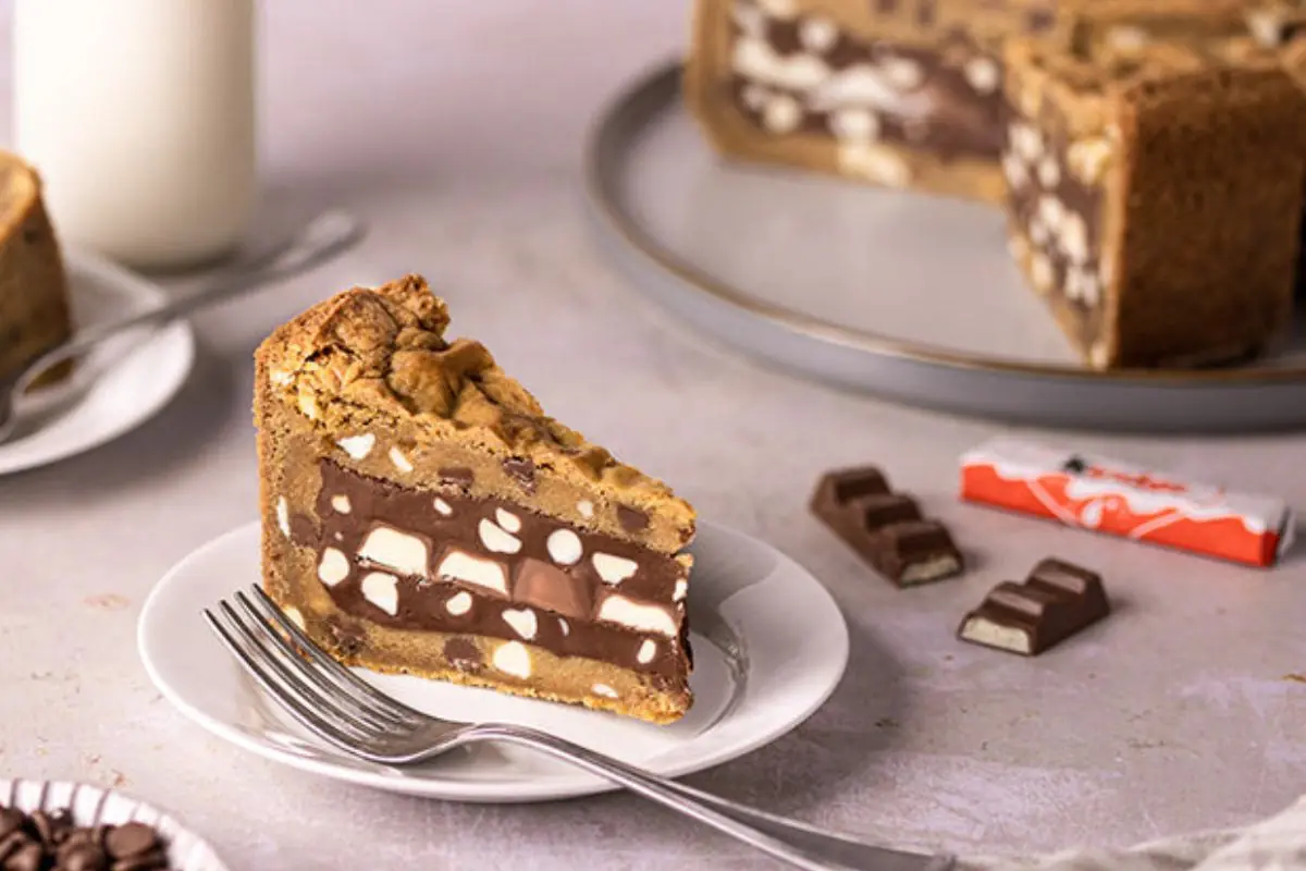 Fatia de Cookie Pie ultra-recheada da Chanel’s Cakery, mostrando sua massa levemente crocante e recheio de ganache com pedaços generosos de chocolate. (Foto: Instagram)
