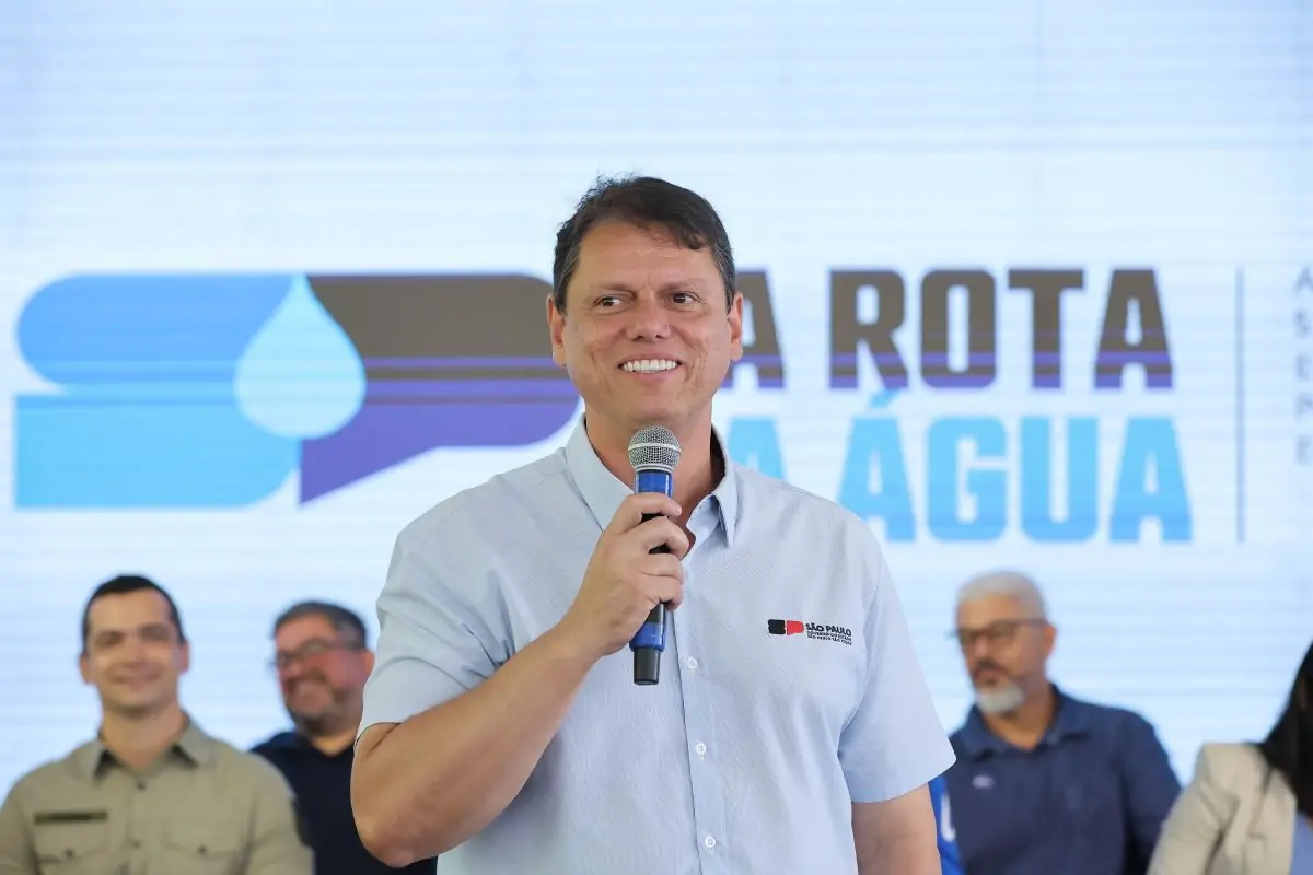 Tarcísio de Freitas em evento ‘Rota da Água’ alerta para uso político de eventual crise hídrica na discussão sobre a privatização da Sabesp (Foto: Instagram)