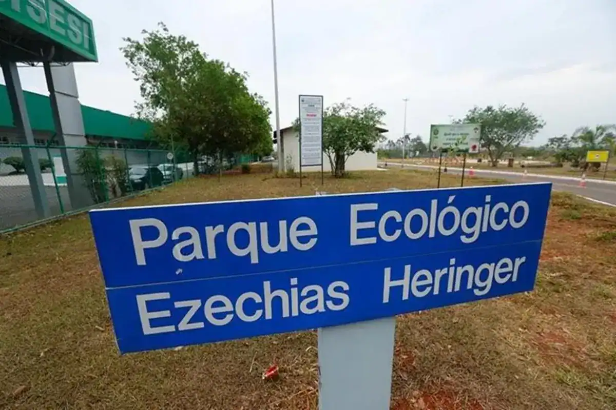Placa do Parque Ecológico Ezechias Heringer, um dos quatro imóveis oferecidos como garantia na nova proposta de capitalização do GDF. (Foto: Instagram)