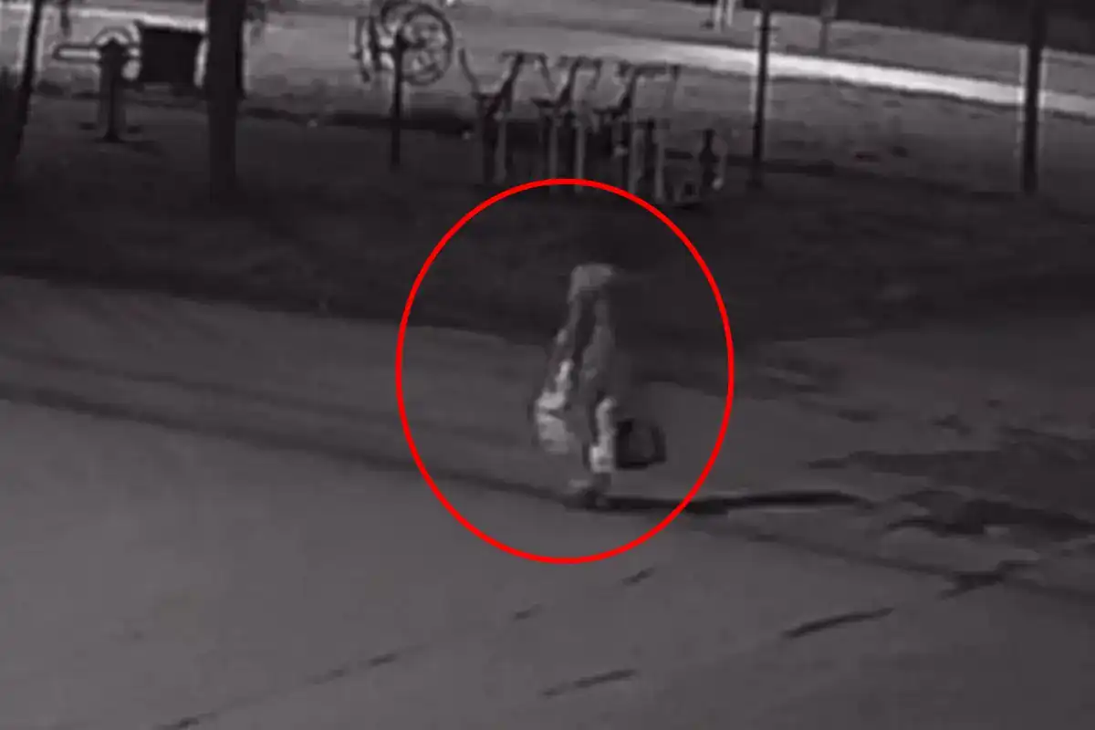 Imagem de segurança flagra pessoa carregando sacolas em área próxima ao local de investigação (Foto: Instagram)