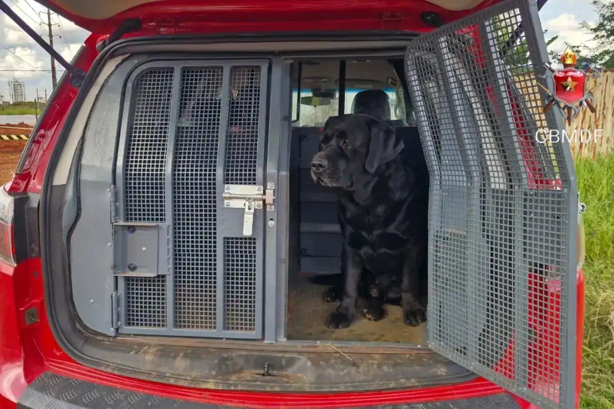 Cão farejador do CBMDF em operação de busca por idoso desaparecido em área de cerrado no DF (Foto: Instagram)