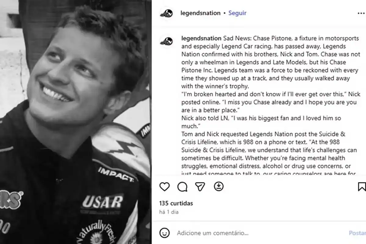 Surpresa com o falecimento do ex-atleta da Nascar, neto de uma lenda do esporte
