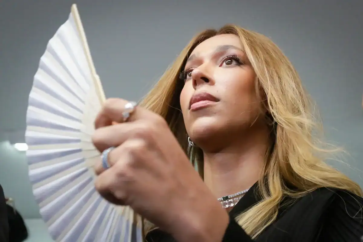 Ativista trans segura leque em ato simbólico contra transfobia (Foto: Instagram)