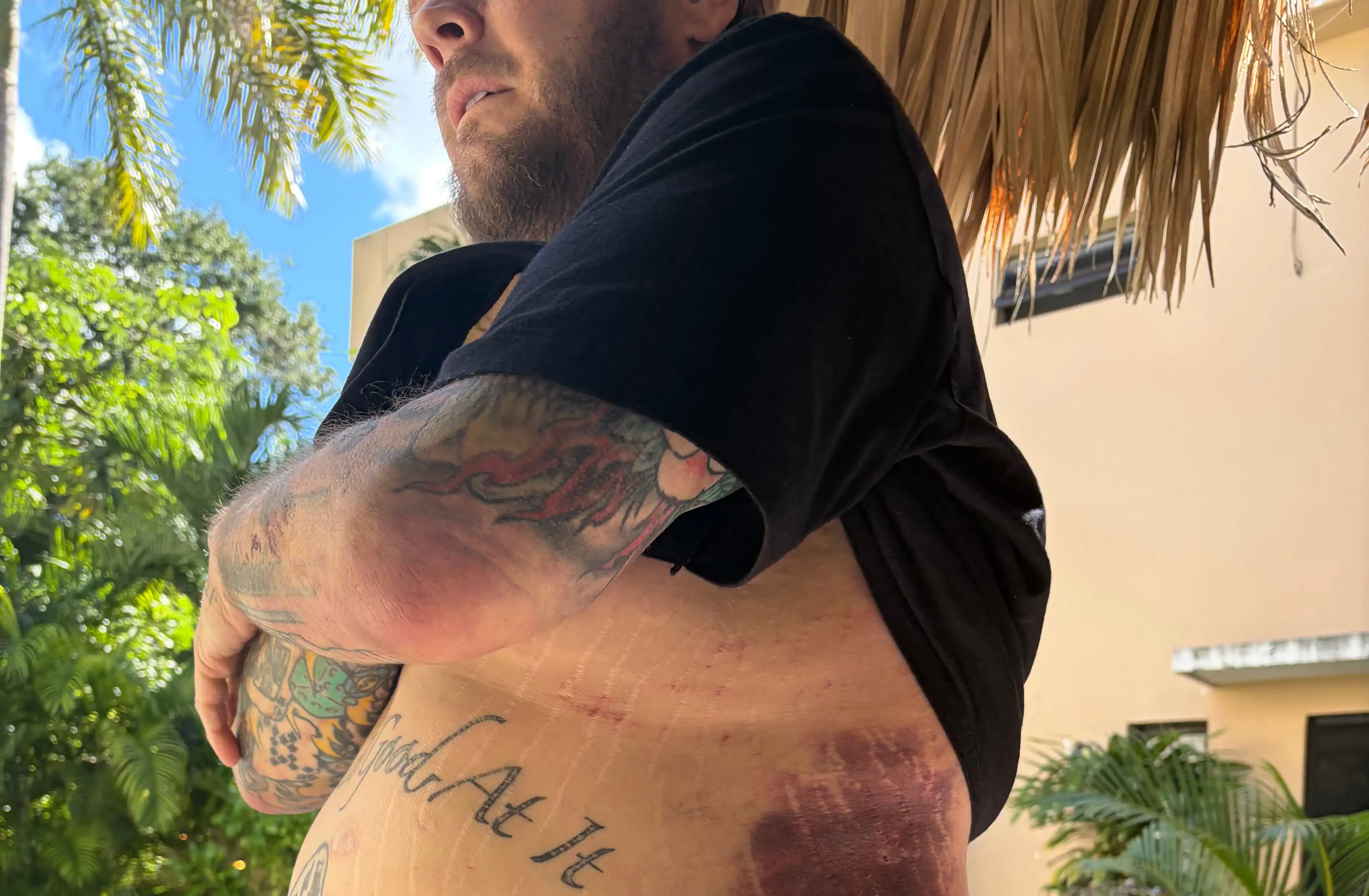 Após o acidente, Corey foi levado para um hospital em Playa del Carmen, onde permaneceu internado por 14 dias. De acordo com o relato da campanha, ele deixou a unidade devido à pressão financeira, mas continuou sentindo dores intensas e precisou de atendimento médico domiciliar, incluindo aplicação de soro e morfina.