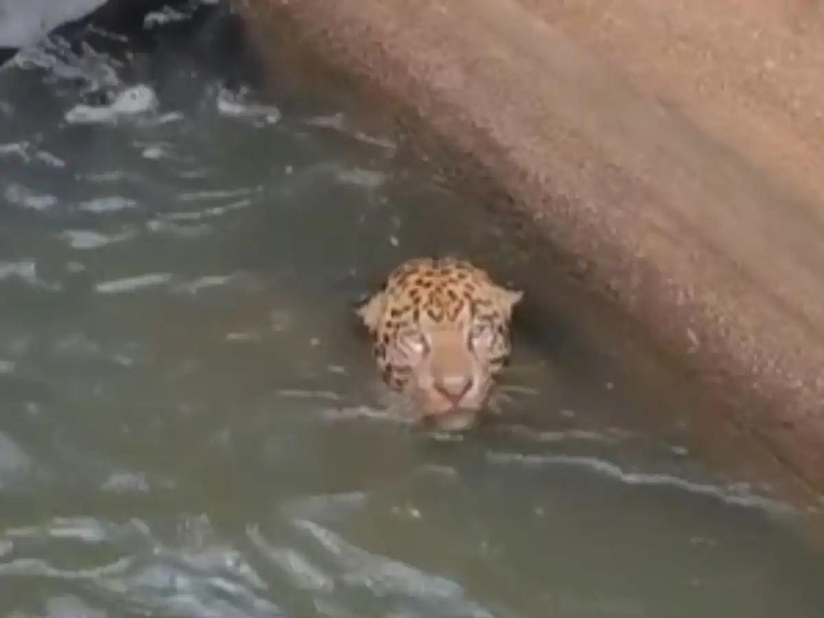 Quando chegaram ao local, os bombeiros verificaram que o animal tinha dificuldades para sair do canal sozinho. Uma avaliação feita por um veterinário apontou que a onça apresentava sinais de hipotermia devido ao tempo prolongado em contato com a água – por esse motivo, não foi possível sedá-la.