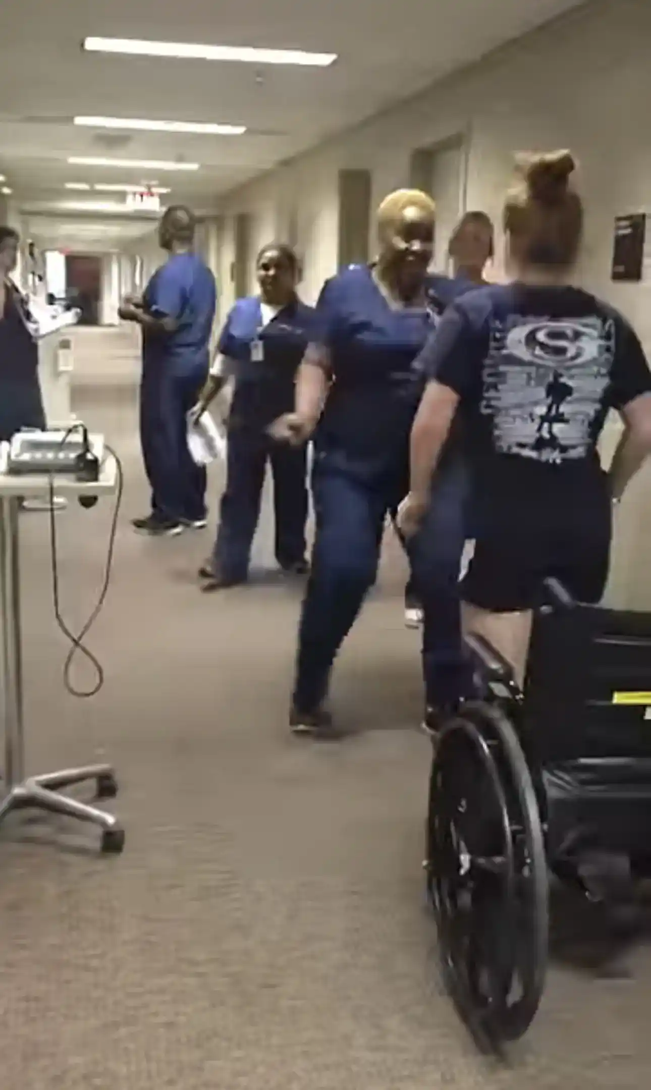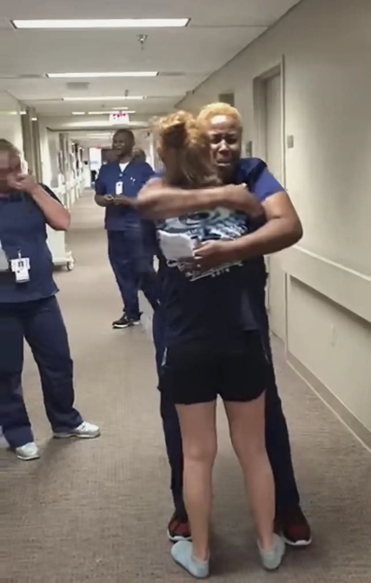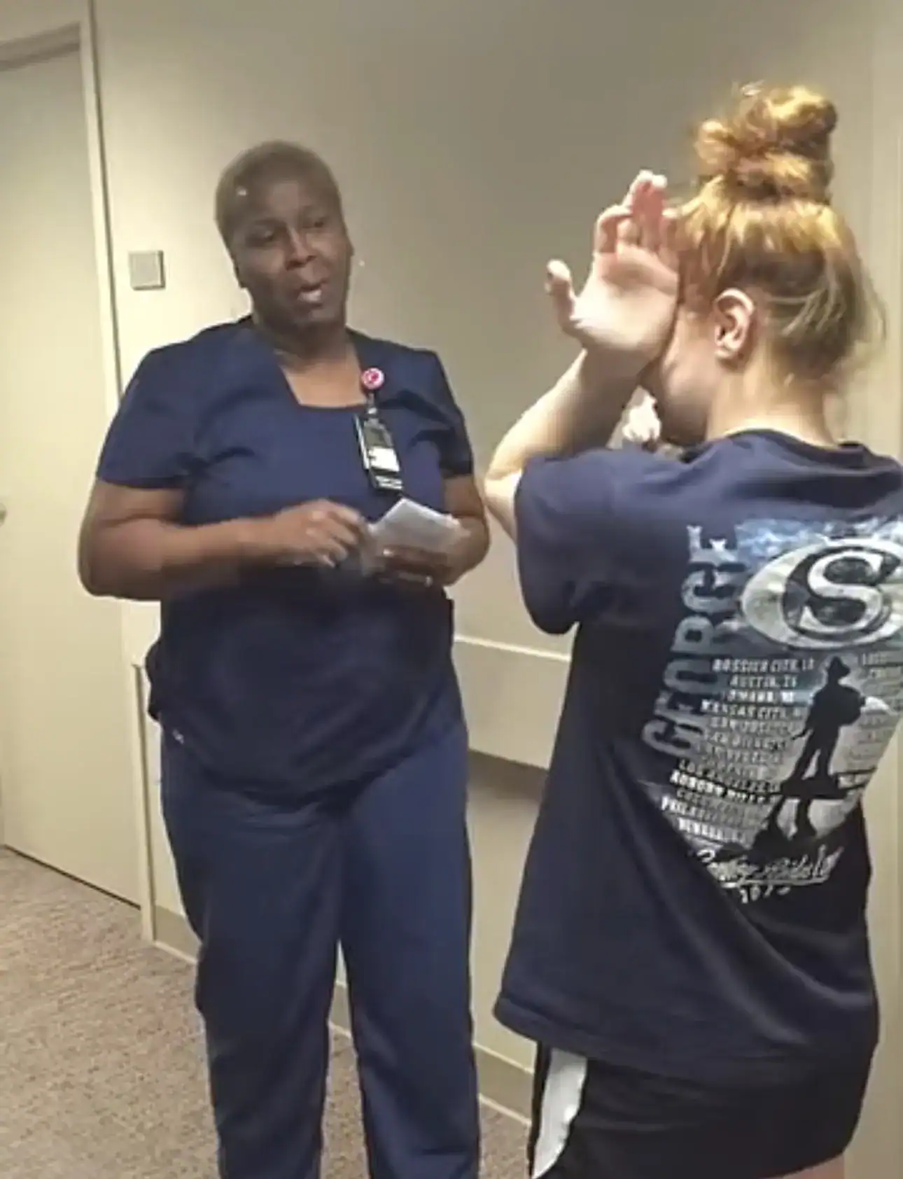 O momento foi registrado em vídeo e mostra a reação da profissional ao perceber que a jovem estava de pé. Ao se aproximar para um abraço, a enfermeira se surpreende quando Bailey se levanta e começa a andar até ela.