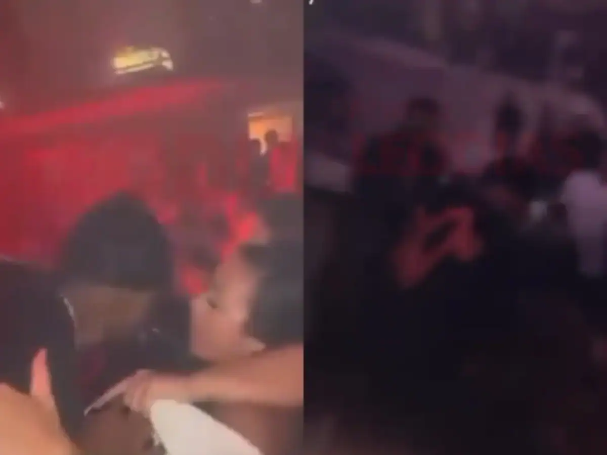 Vídeos que circulam nas redes sociais mostram o momento em que a confusão aumenta, com troca de objetos e agressões próximas ao palco.
