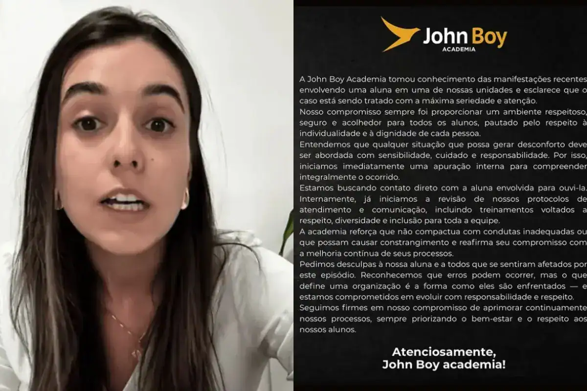 “A John Boy Academia tomou conhecimento das manifestações recentes envolvendo uma aluna em uma de nossas unidades e esclarece que o caso está sendo tratado com a máxima seriedade e atenção.