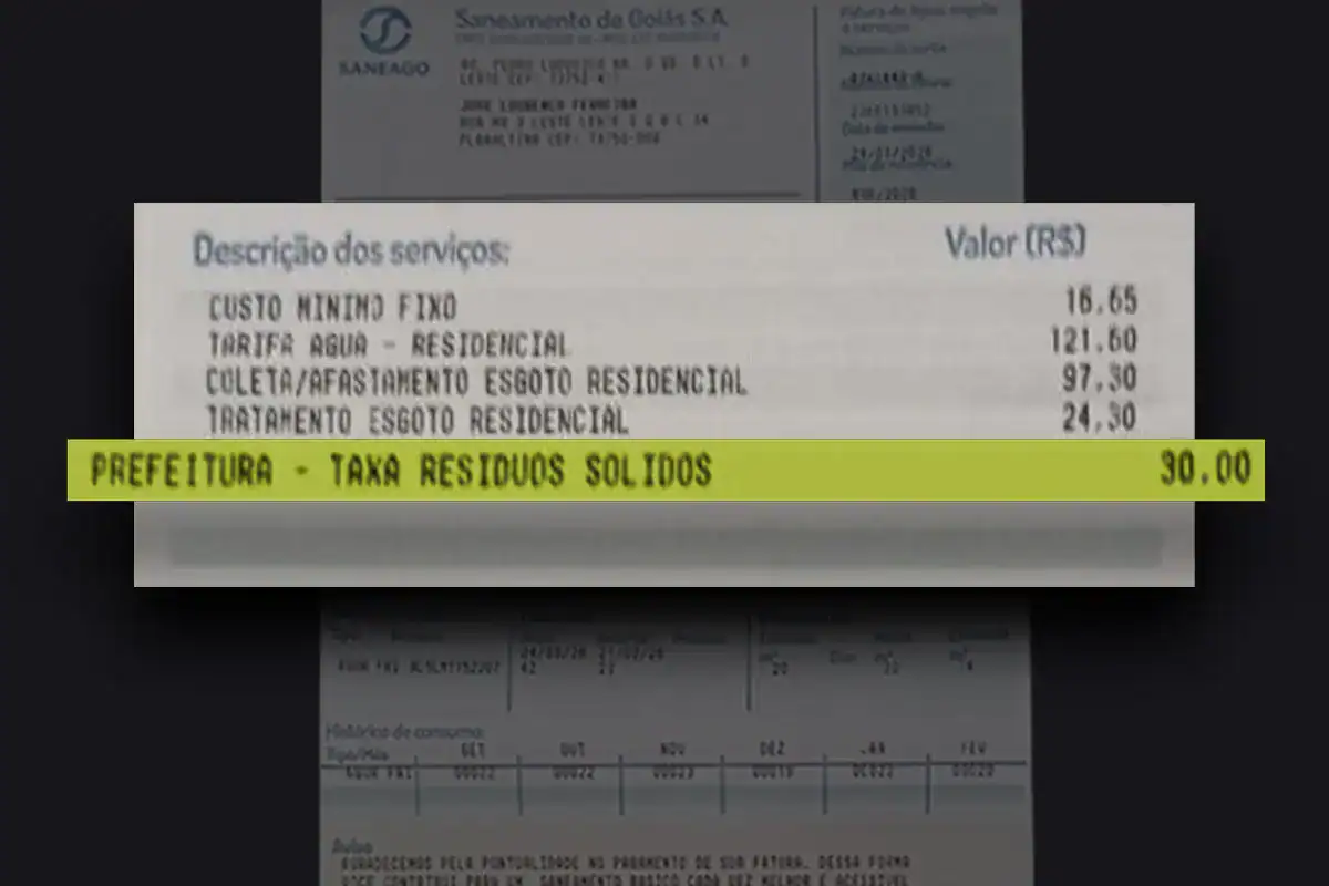 Moradores de Planaltina de Goiás, na região do entorno do Distrito Federal, estão insatisfeitos com a inclusão de uma nova cobrança na conta de água: a Taxa de Manejo de Resíduos Sólidos, no valor de R$ 30, que começou a ser cobrada nas faturas da Saneago.