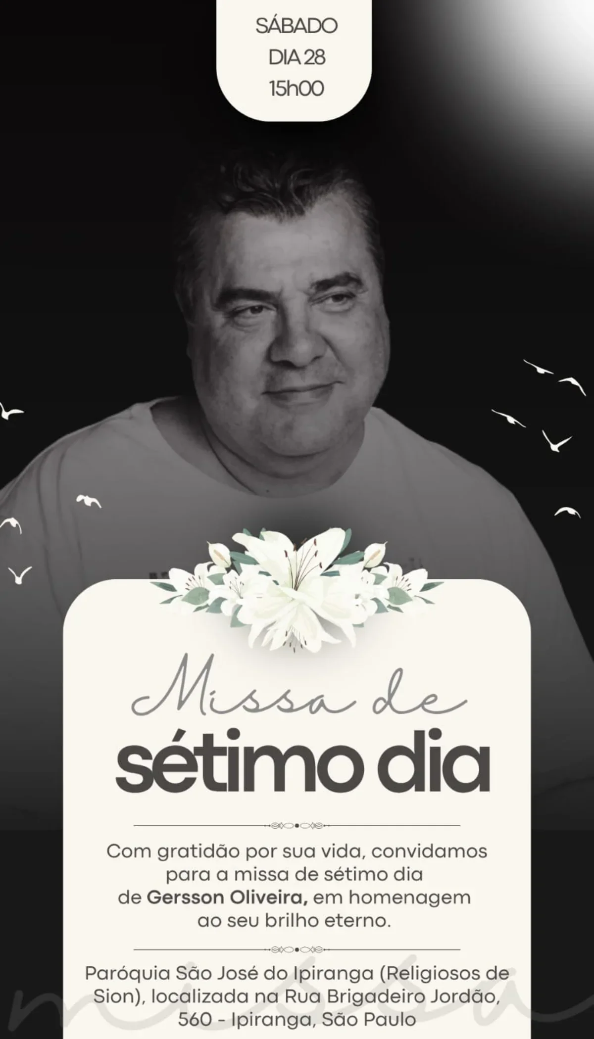 Detalhes da missa de sétimo dia de Gerson Brenner são divulgados