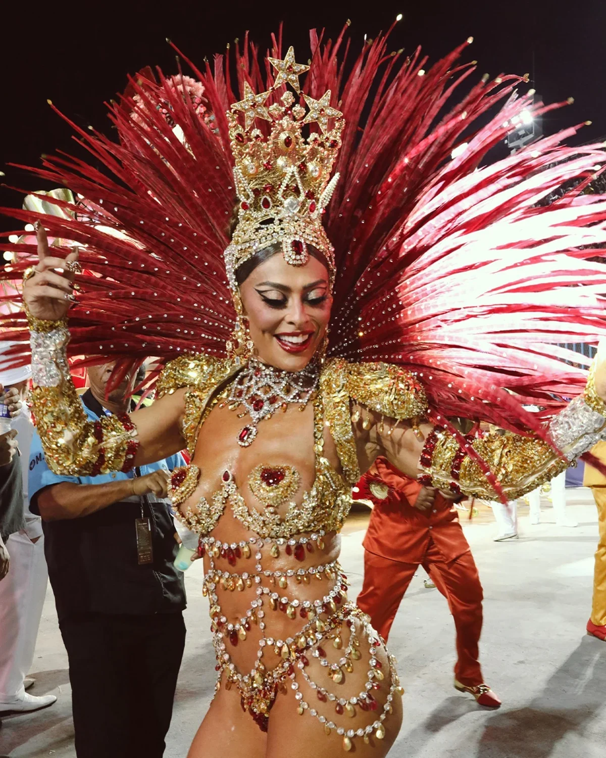 Ela expressou: “Após 17 anos, retornar como Rainha da Furacão Vermelho e Branco foi um sonho! Contamos uma grande história e construímos um Carnaval lindo e vitorioso”.