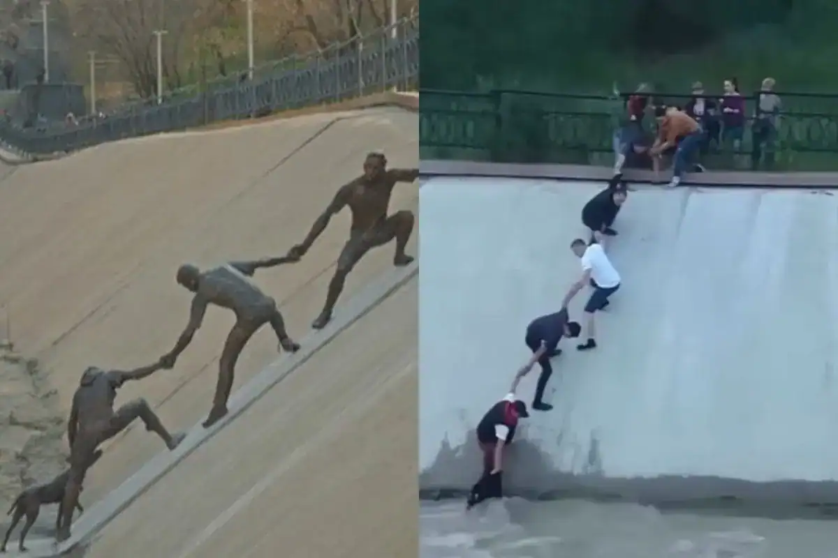 Uma escultura recentemente inaugurada em Almaty, no Cazaquistão, vem chamando a atenção por transformar um ato de solidariedade em arte. A obra imortaliza o resgate de um cachorro, emocionando tanto moradores quanto visitantes ao capturar, em detalhes, o instante em que o animal foi salvo graças ao esforço conjunto de várias pessoas.