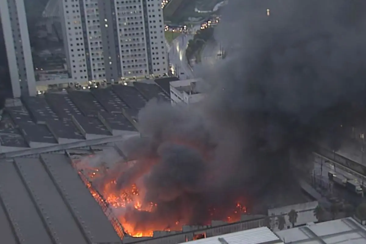 O estabelecimento está localizado na Avenida Fábio Eduardo Ramos Esquivel, número 2430. O local está coberto por chamas e fumaça.