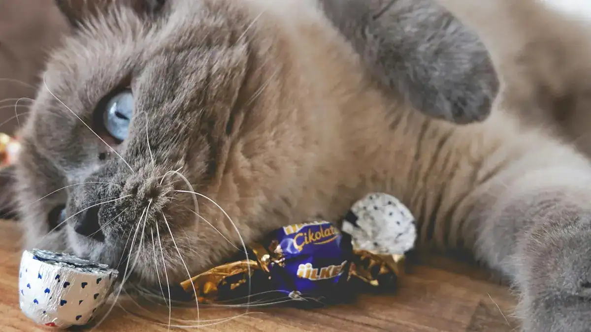 Gatinho curioso ao lado de chocolates de Páscoa: uma combinação perigosa (Foto: Instagram)