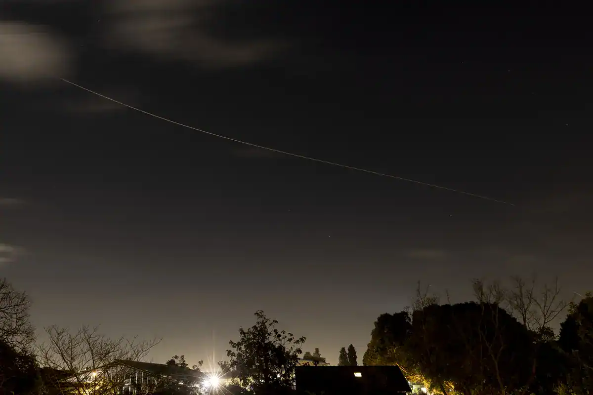 Traço de luz no céu noturno sugere ataque com drones contra datacenters na região do Golfo. (Foto: Instagram)