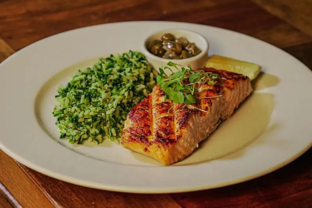 Salmão grelhado com arroz de brócolis e alcaparras é destaque nos menus de Páscoa (Foto: Instagram)